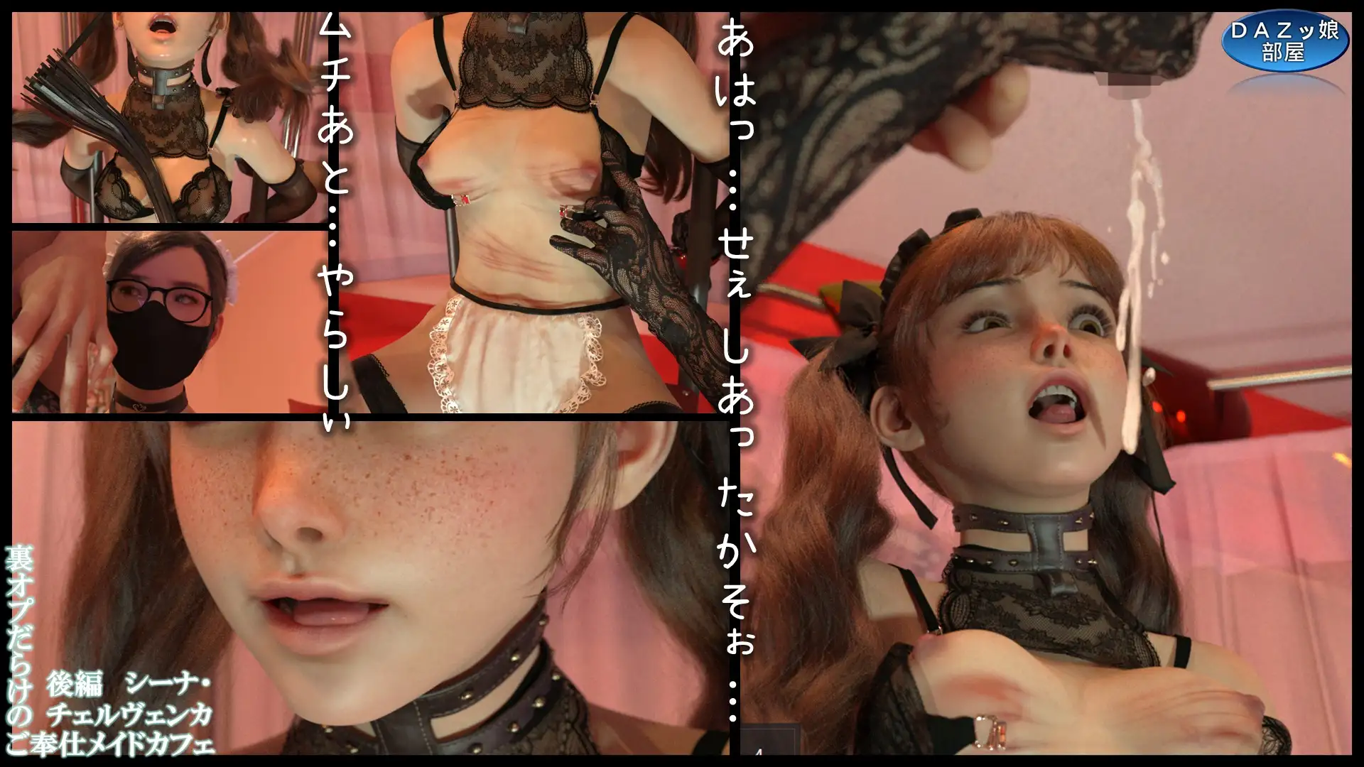 搾りつくしてくれるメイドシーナに身を任せる内容です。ムチ打ち~拘束手コキ~バック挿入(中出し)~対面挿入の流れです。挿入は全てアナルです。