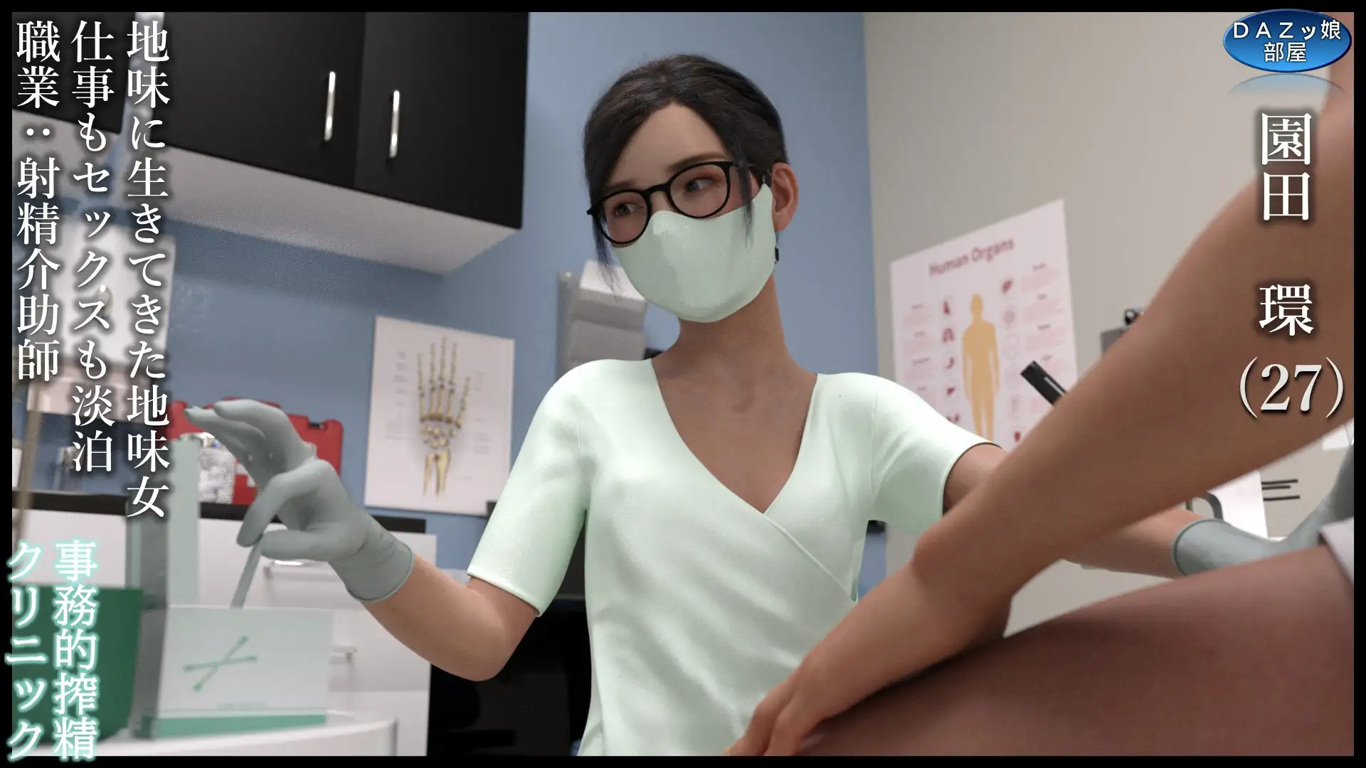 無表情で地味な園田環にずっと精液を搾り取られるクリニックです。手コキ(胸射)